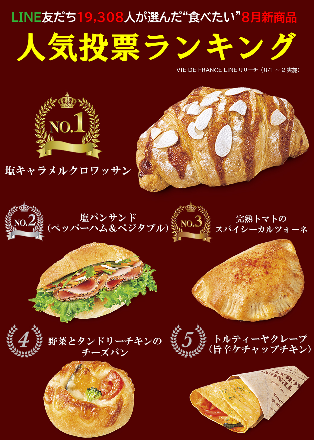 VIE DE FRANCE公式LINEで1.9万人が選んだ人気新商品食べたいパンは何だったのか、詳しくご紹介します。