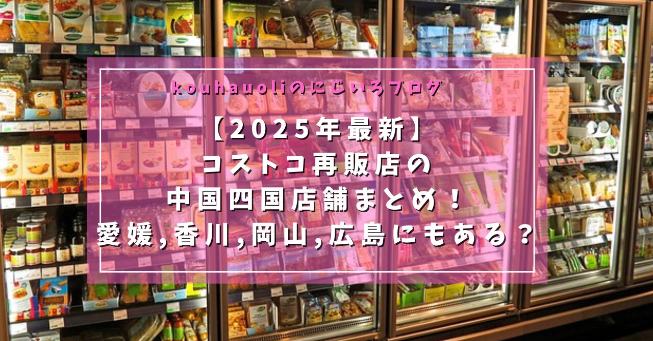 コストコ再販店の中国四国店舗は現在6店舗。愛媛,香川,岡山,広島にあることがわかりました。