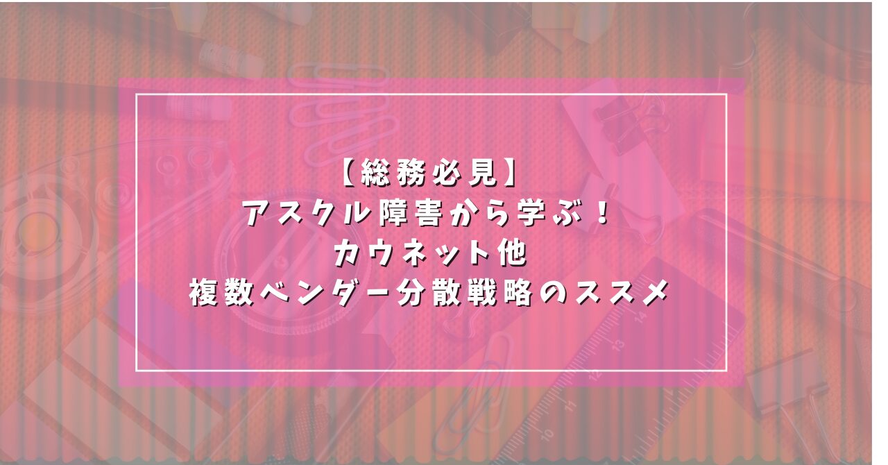 “今からでも遅くない”複数ベンダー分散戦略とカウネット活用術