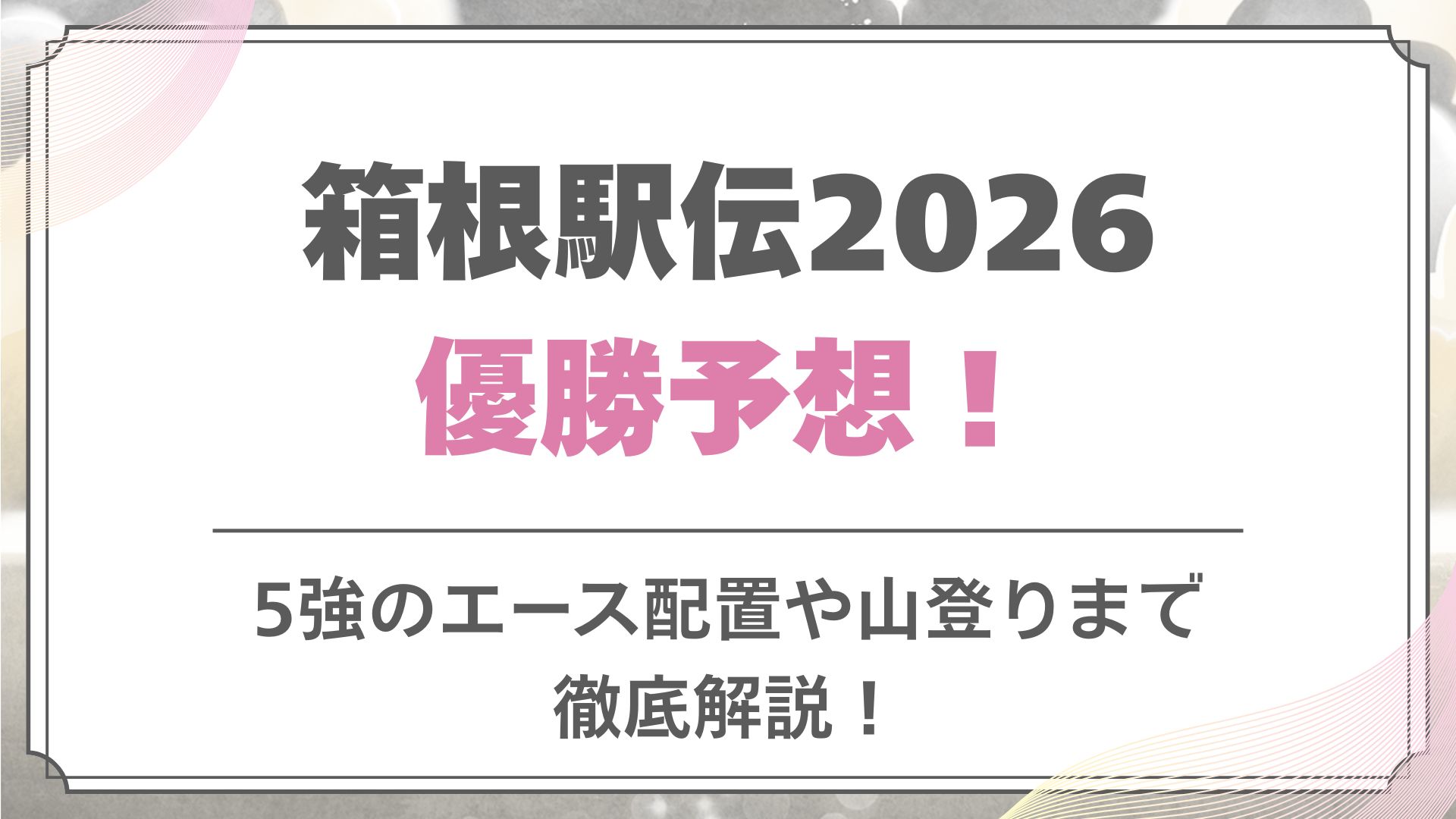 【箱根駅伝2026】優勝予想!5強のエース配置や山登りまで徹底解説!
