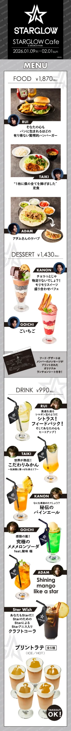 メンバープロデュースのメニューやオリジナルグッズ、そして限定特典を手に入れて、彼らの新しい一歩を全力で応援するための準備を整えてください。