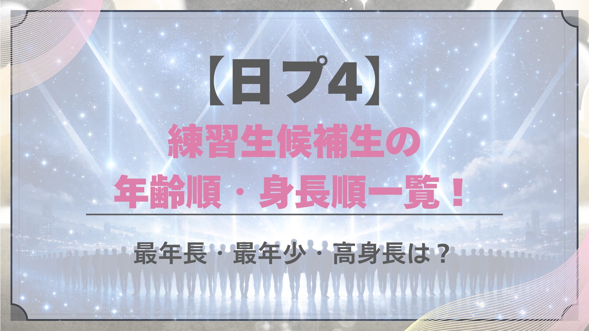 【日プ4】練習生候補生の年齢順・身長順まとめ